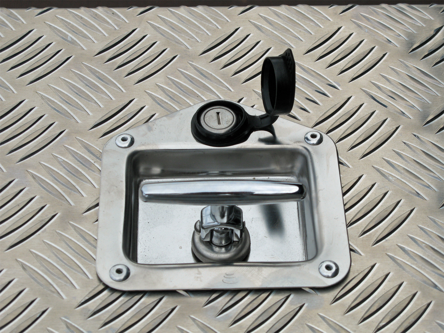 Mit soliden Haltebändern ausgestattet, Regen und Spritzwasser geschützt durch umliegende Dichtungen im Deckel und mit einem Schloss inkl. 2 Schlüsseln ausgestattet. Neues Modell mit Edelstahverschluss
