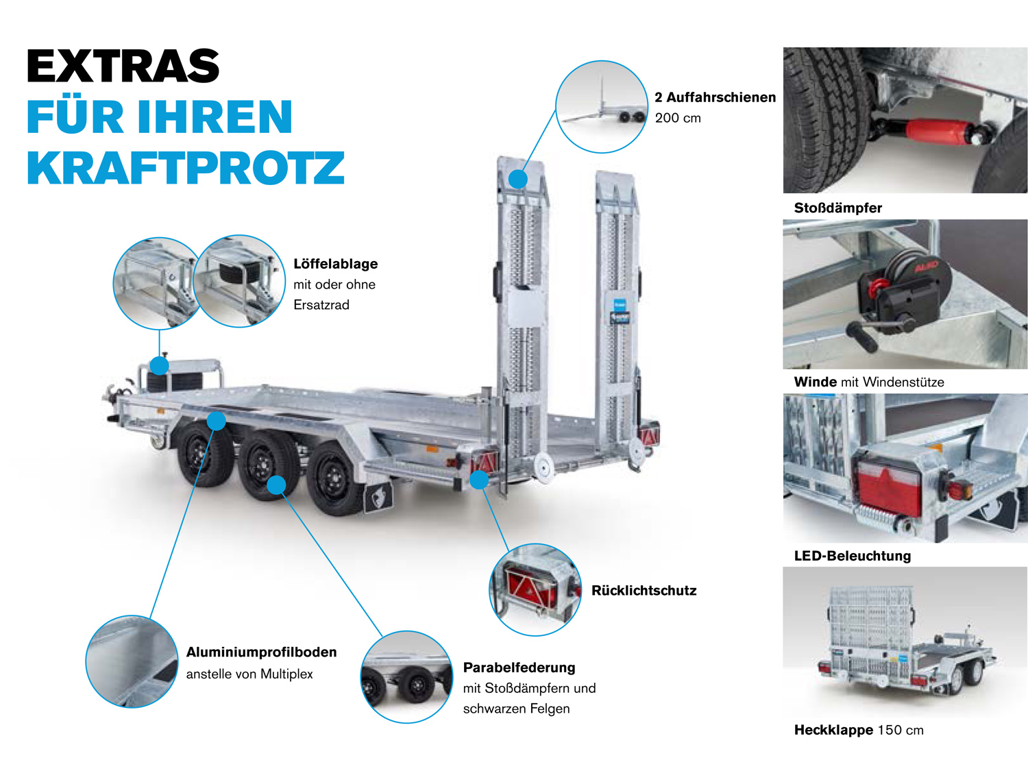 Der neue Indigo LF von Hapert ist ein völlig neuer, leichterer und niedrigerer Maschinentransporter. Das neue robuste Design des Indigo LF verbindet die besten Eigenschaften mit Fahrkomfort! Der neue Indigo LF hat eine Ladeflächenhöhe von 34 cm. Dadurch hat dieser multifunktionale Maschinentransporter einen Auffahrwinkel von nur 10° (mit Auffahrschienen von 200 cm). Der neue Indigo LF hat ein geringes Leergewicht und dadurch eine hohe Nettonutzlast. Darüber hinaus sind mehrere, auf jeden Nutzertypen zugeschnittene Böden verfügbar.