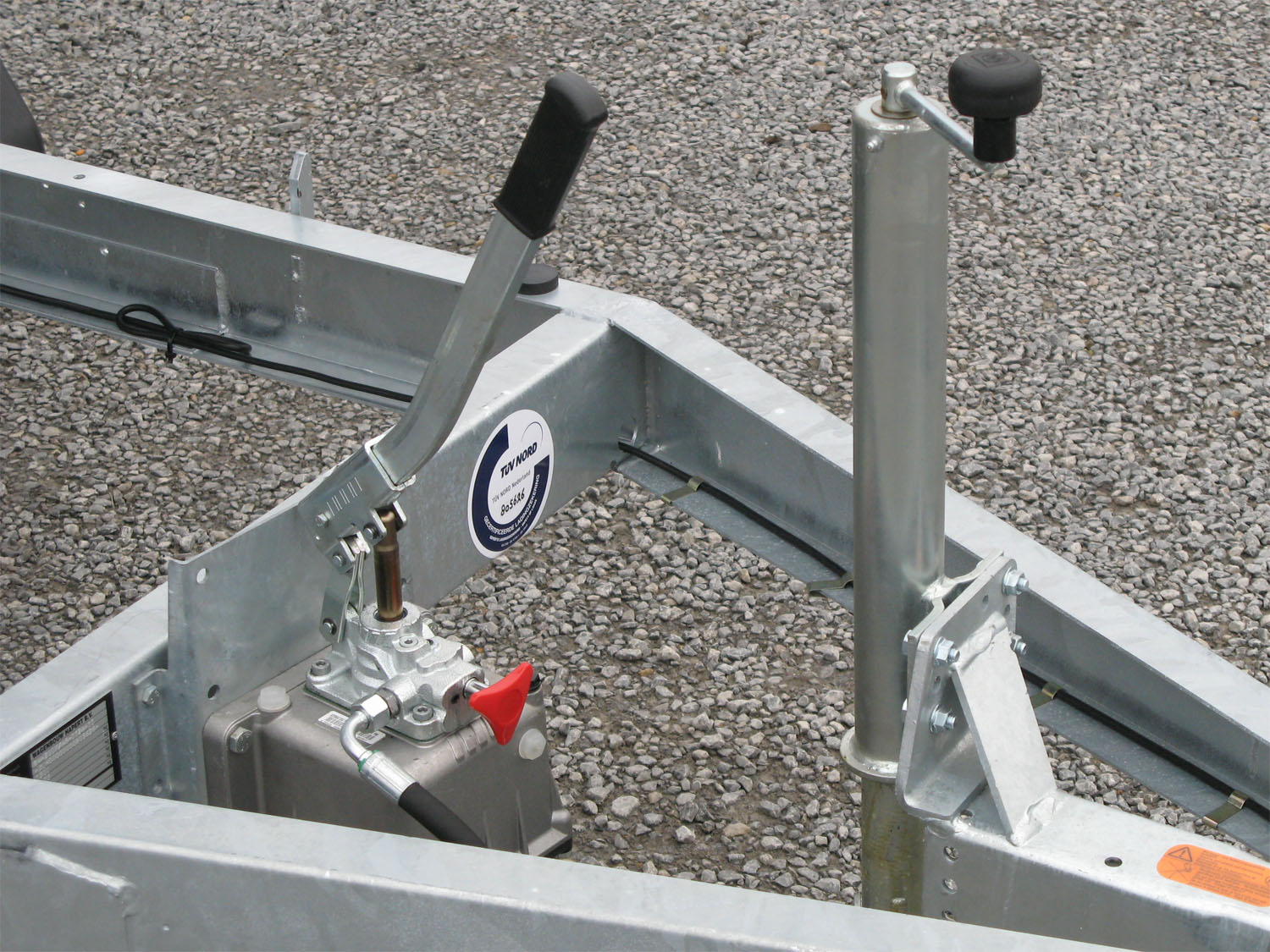 - eingebauter solider Hydraulikzylinder, der mit einer Handpumpe bedient werden kann
