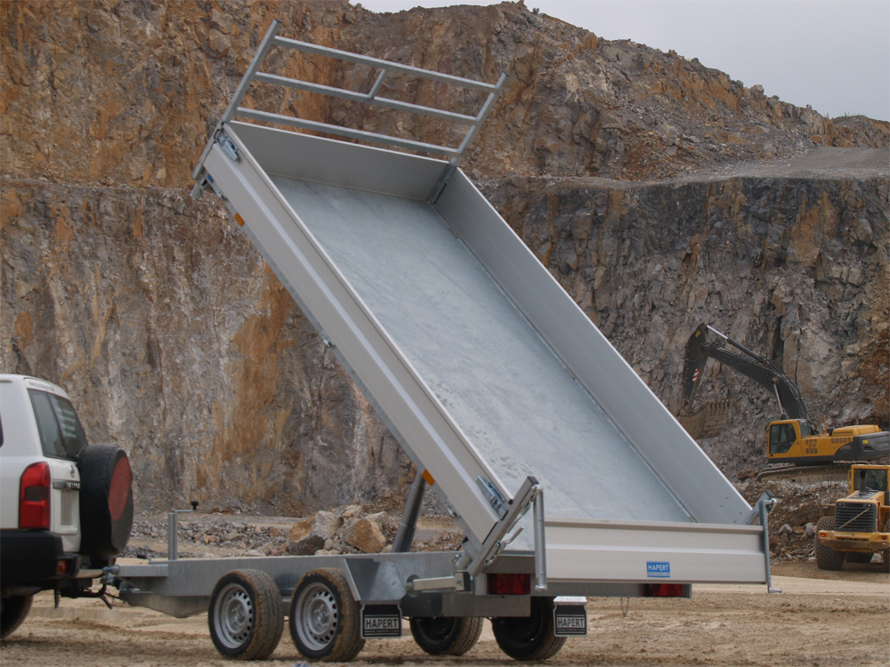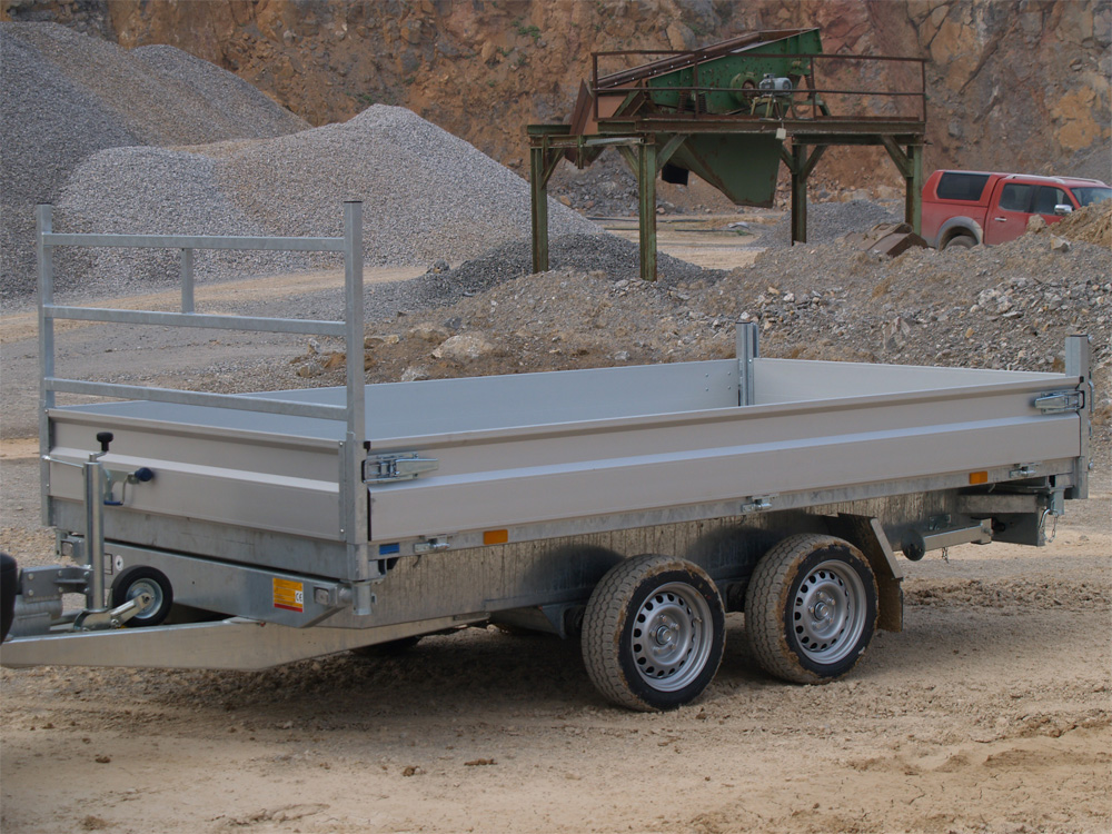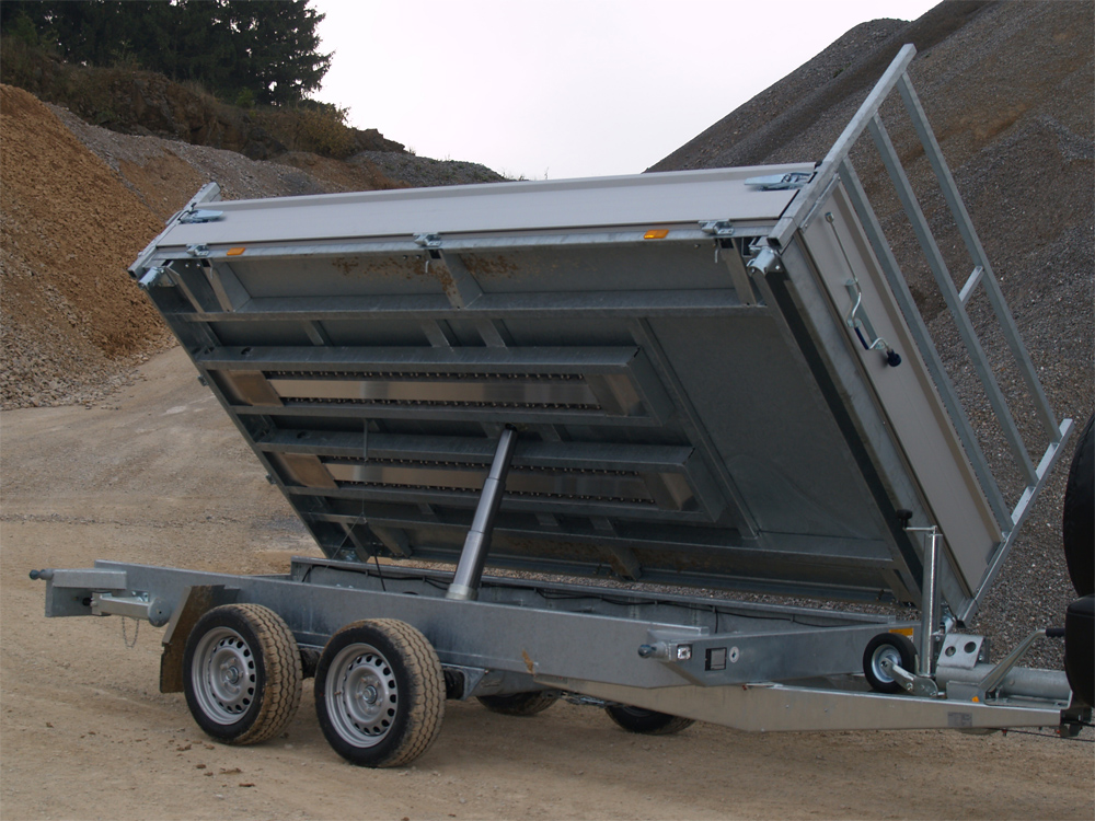 3-Seiten-Kipper mit Hydraulikzylinder und Elektrische Bedienung mit Batterie.