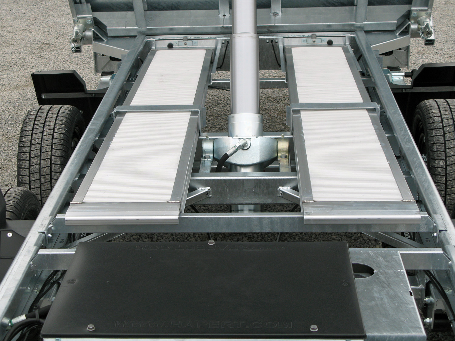 - 2 Aluminium-Auffahrschienen, die unter dem Boden integriert sind