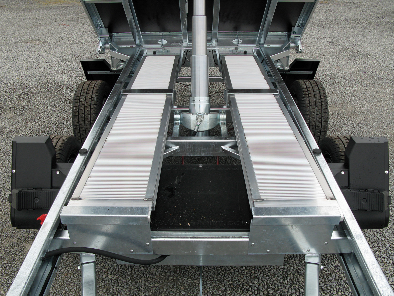 - 2 Aluminium-Auffahrschienen, die unter dem Boden integriert sind