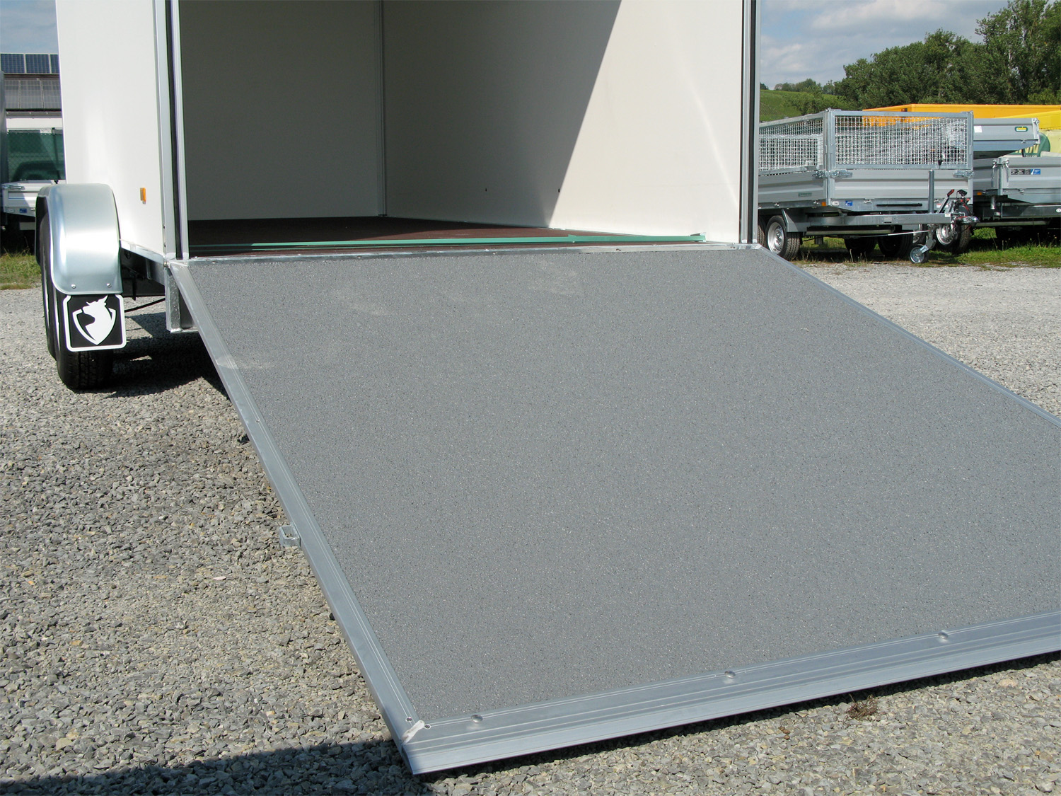 Tieflader-Koffer mit Auffahrklappe rutschhemmend mit Gasdruckfedern