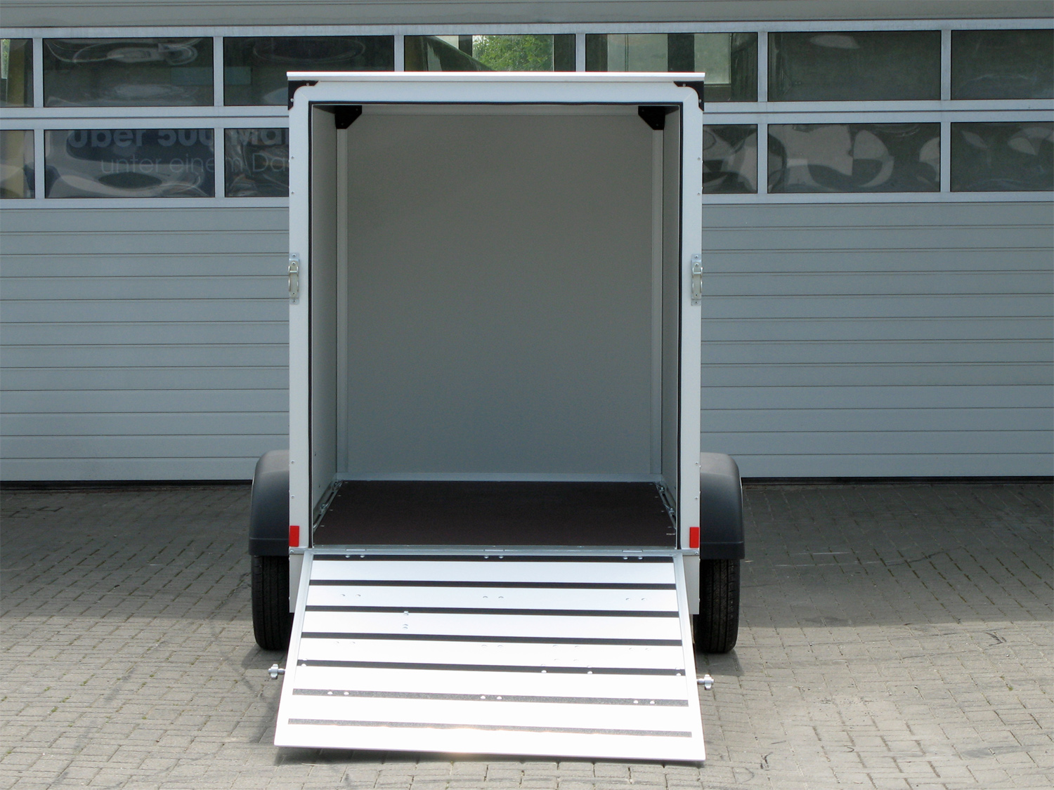 Unser Einachser ist maximal stabil konstruiert: feuerverzinktes Stahlfahrwerk, Kunststoffdichtungen an den Türen, massive Verstärkungen im Dachbereich und der Stirnwand - dieser Anhänger hat eine lange Lebensdauer. Das integrierte Zurrsystem sichert die Ladung im Innenraum. Eine Leuchte sorgt für ausreichendes Licht. So kommen Ihre Güter zuverlässig und unbeschädigt an. Der perfekte Werbeträger: Die Seitenwände des Einachsers bekleben wir gegen einen Aufpreis mit Ihrer individuellen Werbebotschaft. Davon werden Sie lange profitieren.
