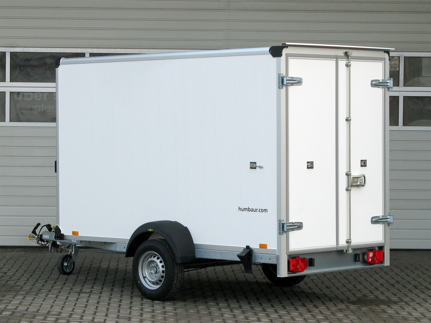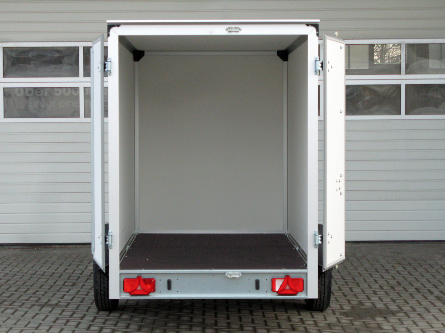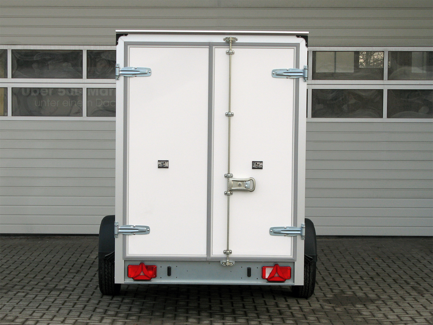 Unser Einachser ist maximal stabil konstruiert: feuerverzinktes Stahlfahrwerk, Kunststoffdichtungen an den Türen, massive Verstärkungen im Dachbereich und der Stirnwand - dieser Anhänger hat eine lange Lebensdauer. Das integrierte Zurrsystem sichert die Ladung im Innenraum. Eine Leuchte sorgt für ausreichendes Licht. So kommen Ihre Güter zuverlässig und unbeschädigt an. Der perfekte Werbeträger: Die Seitenwände des Einachsers bekleben wir gegen einen Aufpreis mit Ihrer individuellen Werbebotschaft. Davon werden Sie lange profitieren.