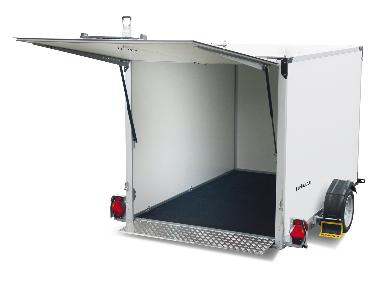 Der clevere Kofferanhänger mit intelligenter Absenkmechanik. Die Ladefläche kommt Ihnen beim Be- und Entladen entgegen. Es entsteht ein flacher Auffahrwinkel von nur 4 bis 6 Grad. Mit der integrierten Auffahrklappe und nach oben öffnender Heckklappe ist dieser Anhänger der perfekte Partner für bequemes Verladen. Ein robuster, rutschhemmender Boden und stabile Seitenwände mit GFK-Beschichtung sorgen für Langlebigkeit. Mit einer optionalen Wippe perfekt zum Transport von Motorrädern geeignet.