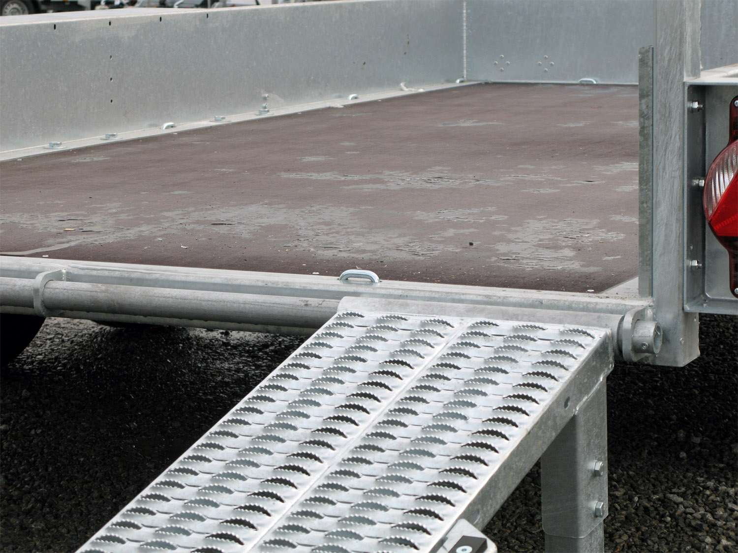- Tragkraft je Rampe 1500 kg, mit rutschhemmendem Gitterbelag sowie integrierten Stützfüßen