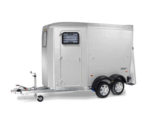 Multifunktionalität in neuer attraktiver Verpackung. Die neuen Notos® Modelle in Alu zeichnen sich durch Ihre Vielseitigkeit aus. Die dreh- und schwenkbare, gasfederunterstützte Auflaufklappe hinten ist das erste Highlight. Eine drehbare Mittelpfostentrennwand kann man dank vertikalem Mittelpfosten so verstellen, dass Ihr Pferd bei Bedarf komfortabel durch den optionalen Frontausstieg links oder rechts nach vorne aussteigen kann. Das EquiSpace®-Raumkonzept und EquiDrive®-Fahrwerk sind serienmäßig mit dabei. Ein umfangreiches Zubehörprogramm komplettiert auf Wunsch dieses Allround- Anhängermodell.