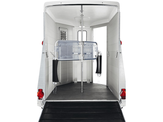 Multifunktionalität in neuer attraktiver Verpackung. Die neuen Notos® Modelle in Alu zeichnen sich durch Ihre Vielseitigkeit aus. Die dreh- und schwenkbare, gasfederunterstützte Auflaufklappe hinten ist das erste Highlight. Eine drehbare Mittelpfostentrennwand kann man dank vertikalem Mittelpfosten so verstellen, dass Ihr Pferd bei Bedarf komfortabel durch den optionalen Frontausstieg links oder rechts nach vorne aussteigen kann. Das EquiSpace®-Raumkonzept und EquiDrive®-Fahrwerk sind serienmäßig mit dabei. Ein umfangreiches Zubehörprogramm komplettiert auf Wunsch dieses Allround- Anhängermodell.