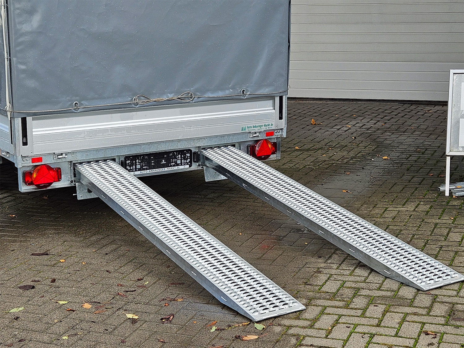 - 2 tauchbad feuerverzinkte Auffahrbohlen aus Gitterrost unter der Ladefläche eingeschoben