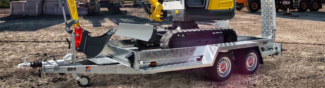 Mit einer Nutzlast von bis zu 2,7 Tonnen sind unsere universell einsetzbaren STEMA Baumaschinentransporter ein starker Begleiter für schwerste gewerbliche sowie private Einsätze. Durch ein großes Angebot an Zubehör, lassen sich die Verwendungsmöglichkeiten der STEMA Baumaschinentransporter unbegrenzt erweitern. Der STEMA Baumaschinentransporter ist universell einsetzbar und somit der ideale Begleiter für den gewerblichen Bereich. Arbeitsgeräte wie Baumaschinen lassen sich über die stabilen Auffahrrampen (1,70 m lang, 30 cm breit) mühelos verladen. Durch den extrem niedrigen Auffahrwinkel von 18° lassen sich selbst schwerste Maschinen ohne Probleme verladen und das Automatik-Schwerlaststützrad ist bereits inklusive. Außerdem gibt es den BAUMA wahlweise mit STEMA-V-Deichsel oder Zentralrohr.