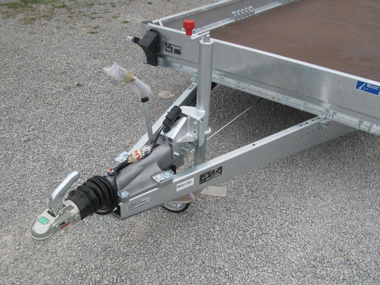 - geschweißtes und im Tauchbad feuerverzinktes Fahrgestell aus massiven Stahlblech