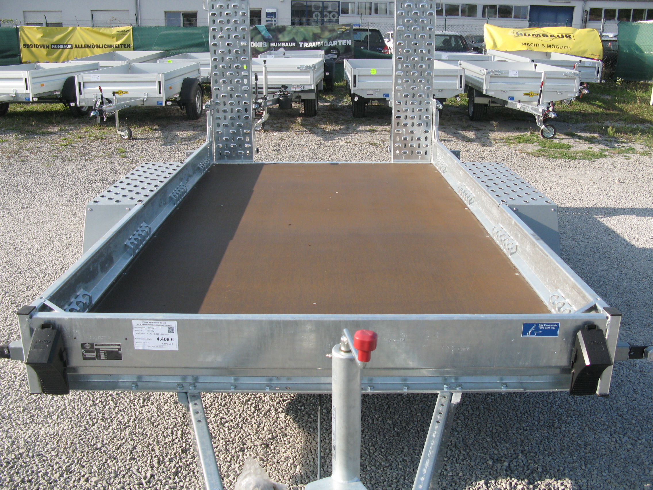 - durchgängiger Siebdruckholzboden (18 mm dick ), wahlweise mit zus. Alu-Riffelblech-Boden (3 mm dick) *