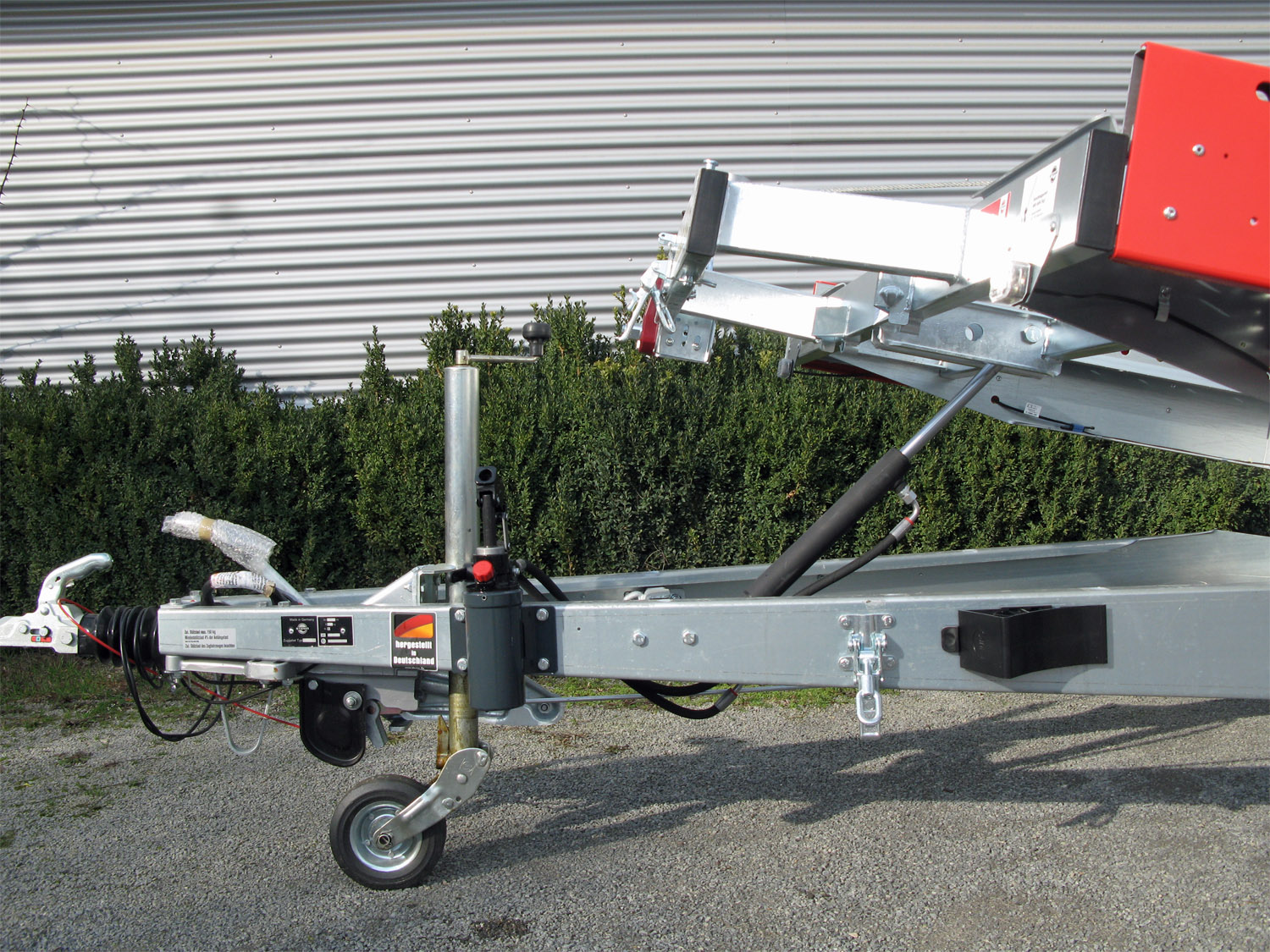 - Hydraulische doppelwirkende Handpumpe zum problemlosen An- und Abkippen des Anhängeraufbaus.