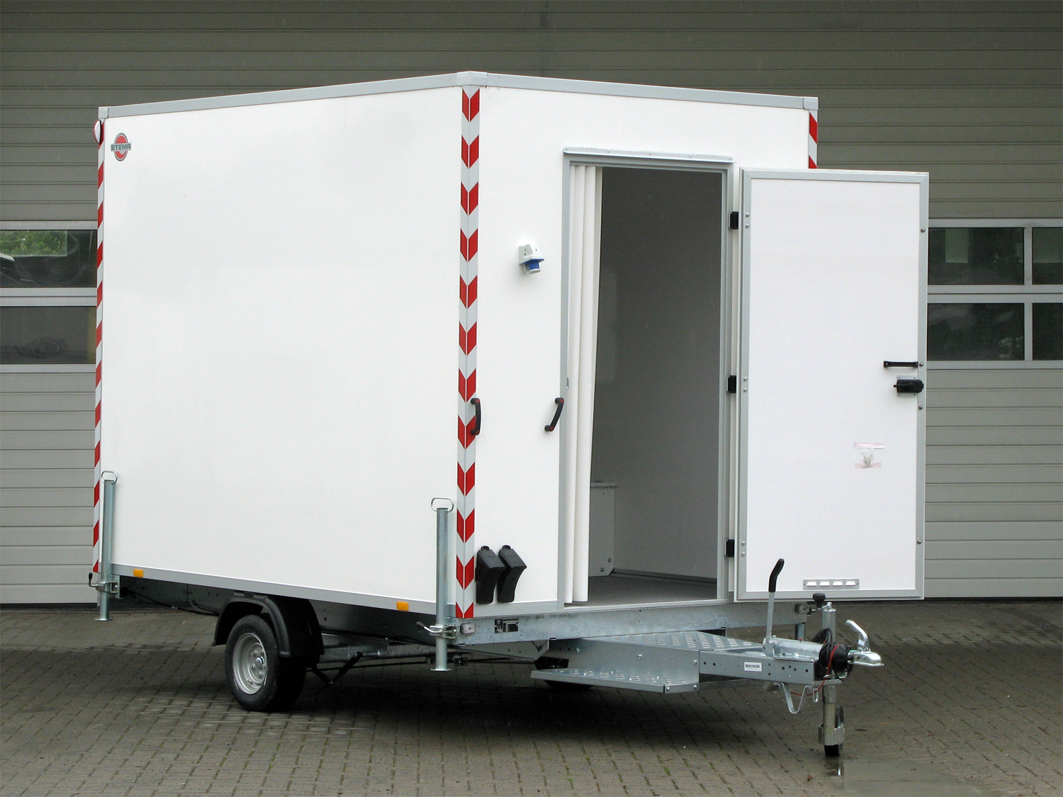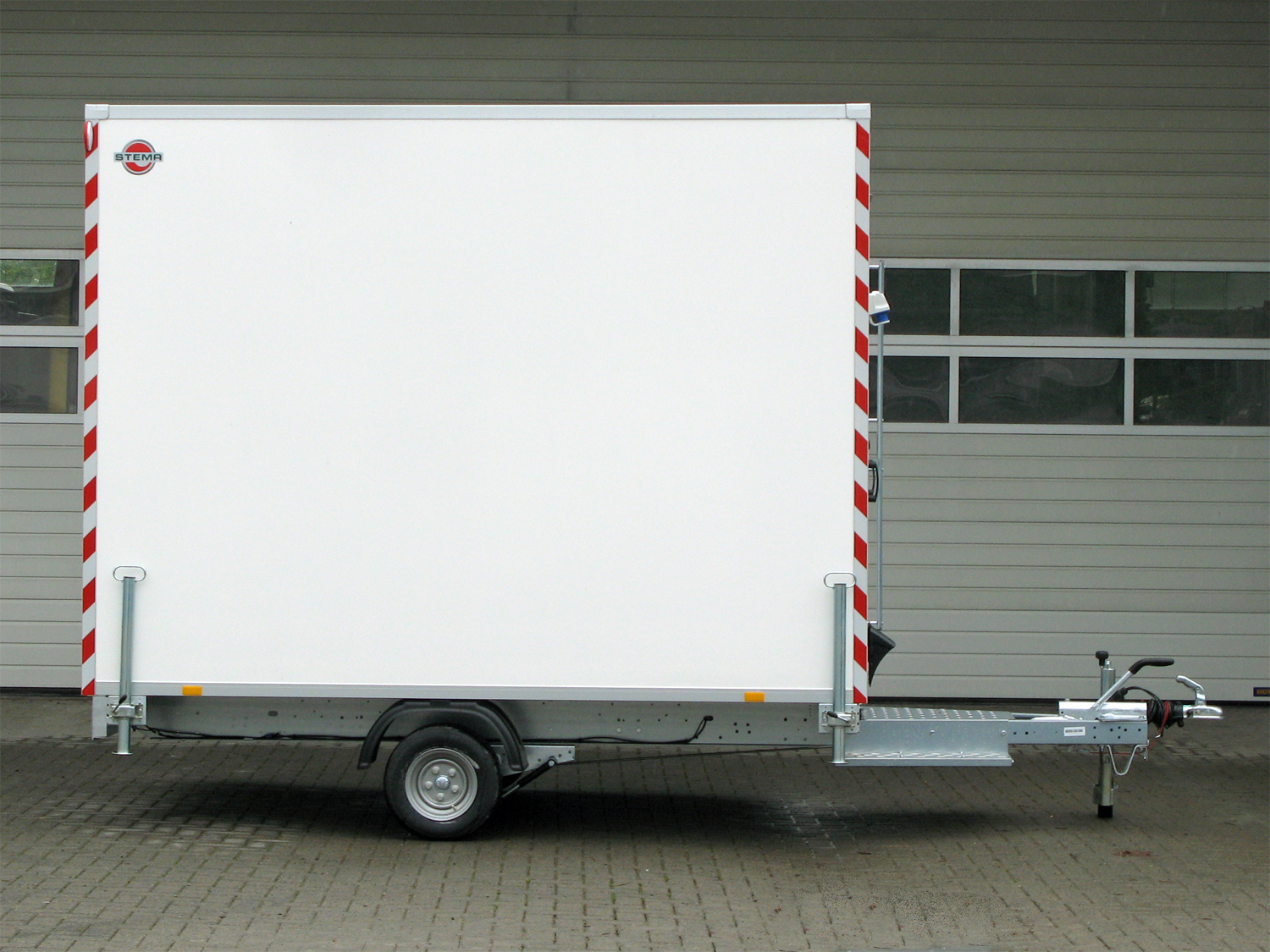 Entdecken Sie den STEMA Bauwagen – Ihr mobiler Aufenthaltsraum für effizientes Teamwork auf der Baustelle! Mit großzügigen Maßen von 307 x 201 x 230 cm bietet dieser Anhänger ausreichend Platz für Materialien und entspannte Pausen. Die Tür in der Vorderwand mit Trittstufe auf der Deichsel ermöglicht einen einfachen Zugang, während das Fenster in der Rückwand für Belüftung sorgt. Dank des innovativen Verzurrsystems können Sie den Bauwagen individuell anpassen und mit drei verschiedenen Ausstattungspaketen erweitern. Ob Besprechungsraum, Pausenzone oder Aufenthaltsraum – der STEMA Bauwagen bietet Ihnen die Flexibilität, Ihren Baustellenalltag effizient zu gestalten. Investieren Sie in Funktionalität und Teamarbeit – investieren Sie in den STEMA Bauwagen!