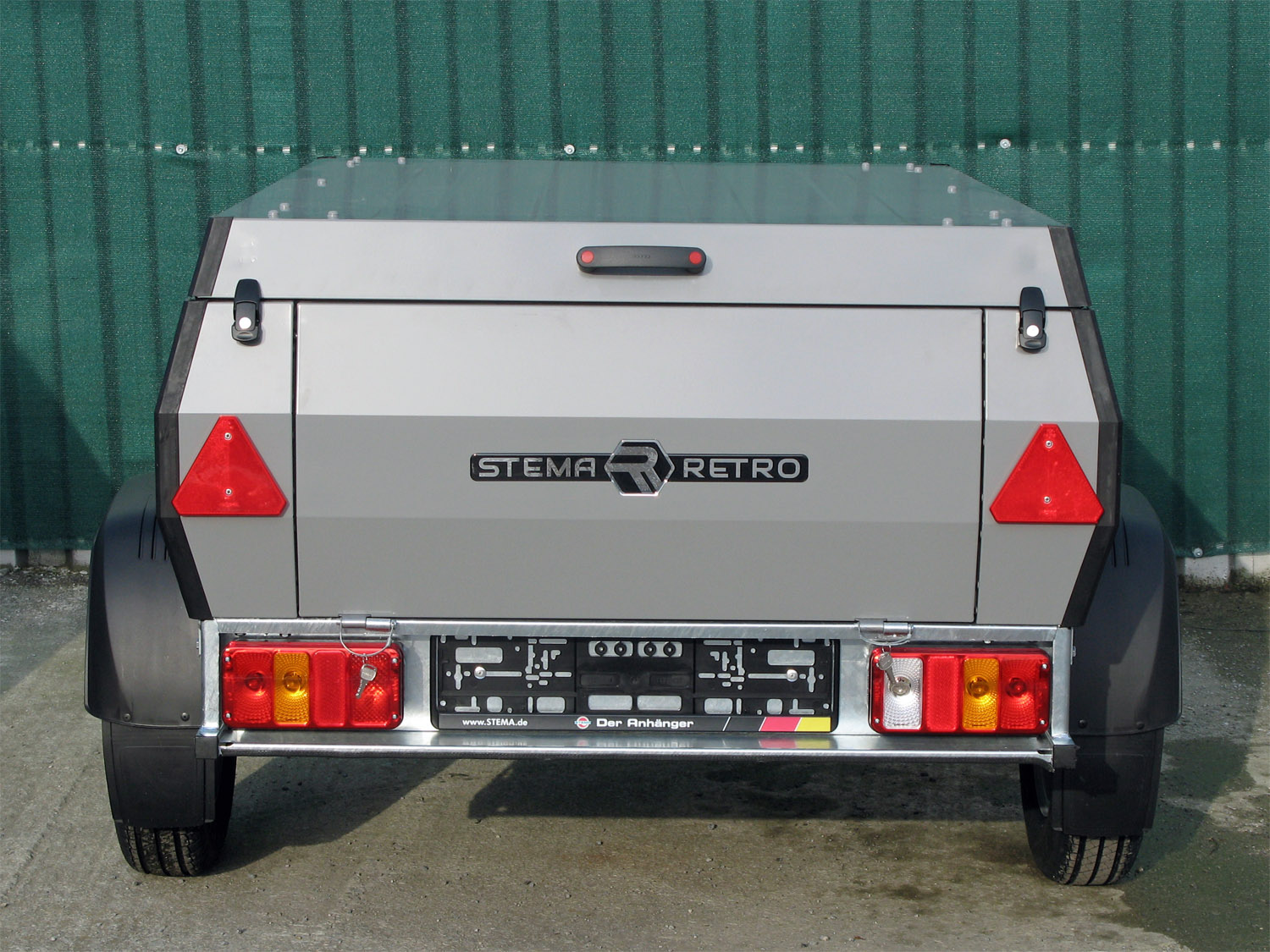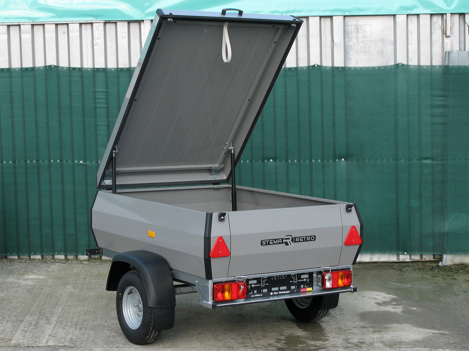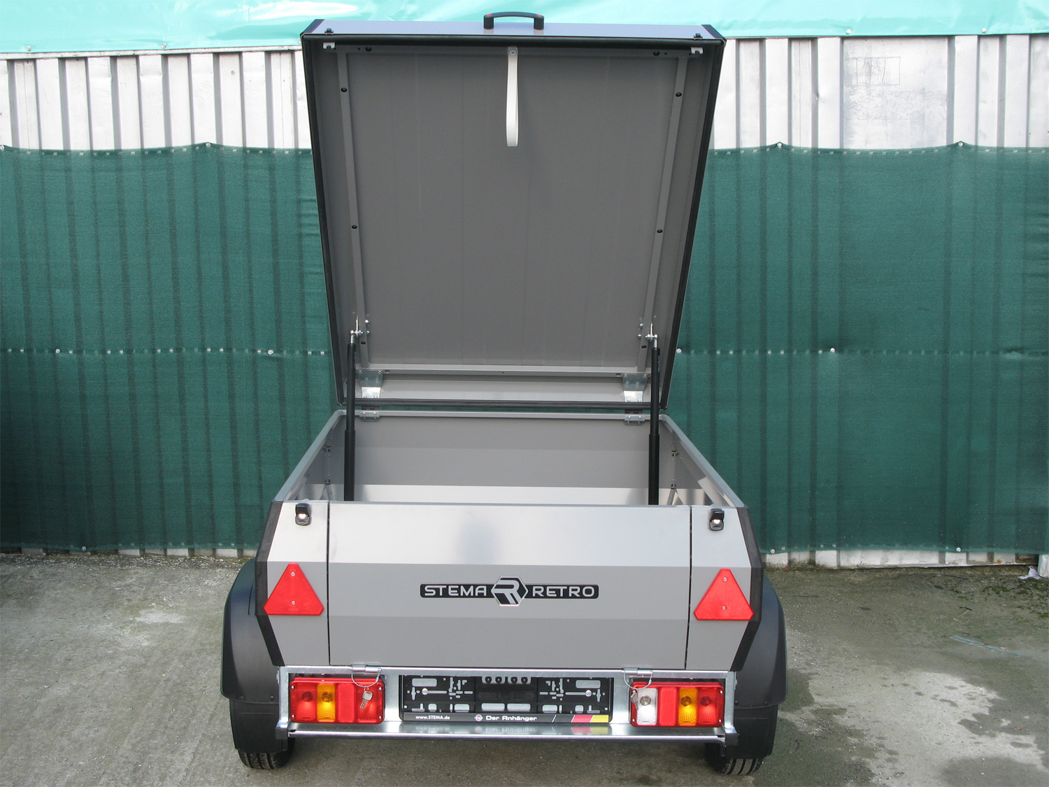 Der STEMA RETRO ist ein geschlossener Kasten mit Deckel und einer zusätzlichen Kippfunktion des Anhängerkastens ausgestattet. Mit dieser Funktion wird das Be- und Entladen des Anhängers erleichtert.