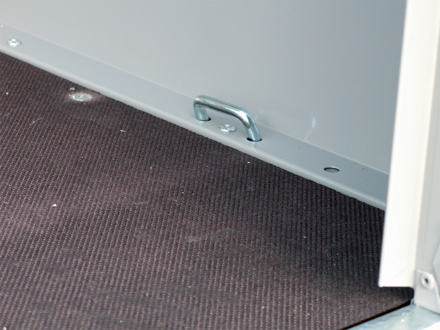 - abschließbarer Deckel (RAL 7037 staubgrau) mit zwei Gasfedern als Hebehilfe