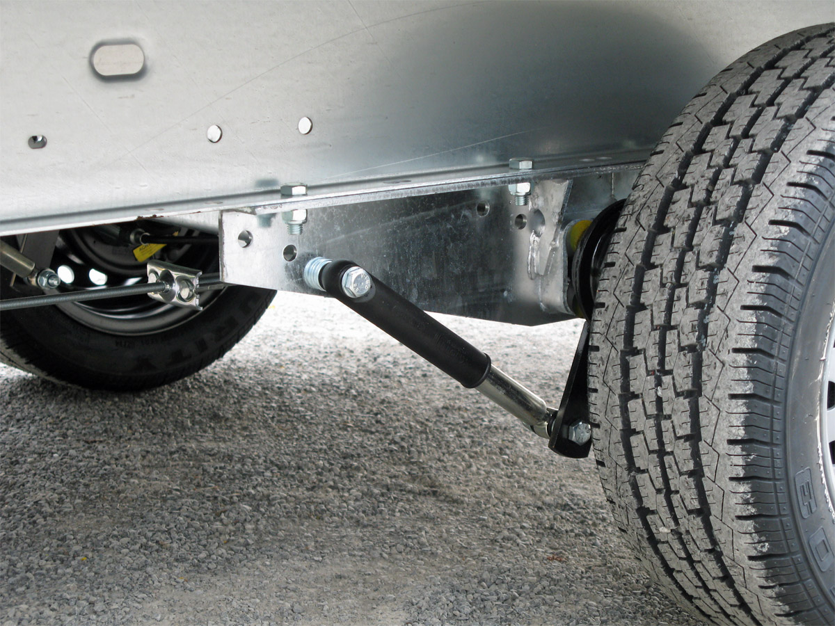 Alle gebremsten SySTEMA-Anhänger ab 850 kg zul. Gesamtgewicht sind serienmäßig mit Stoßdämpfern ausgerüstet. Diese Anhänger können direkt bei der Zulassungsstelle für 100 km/h zugelassen werden.
