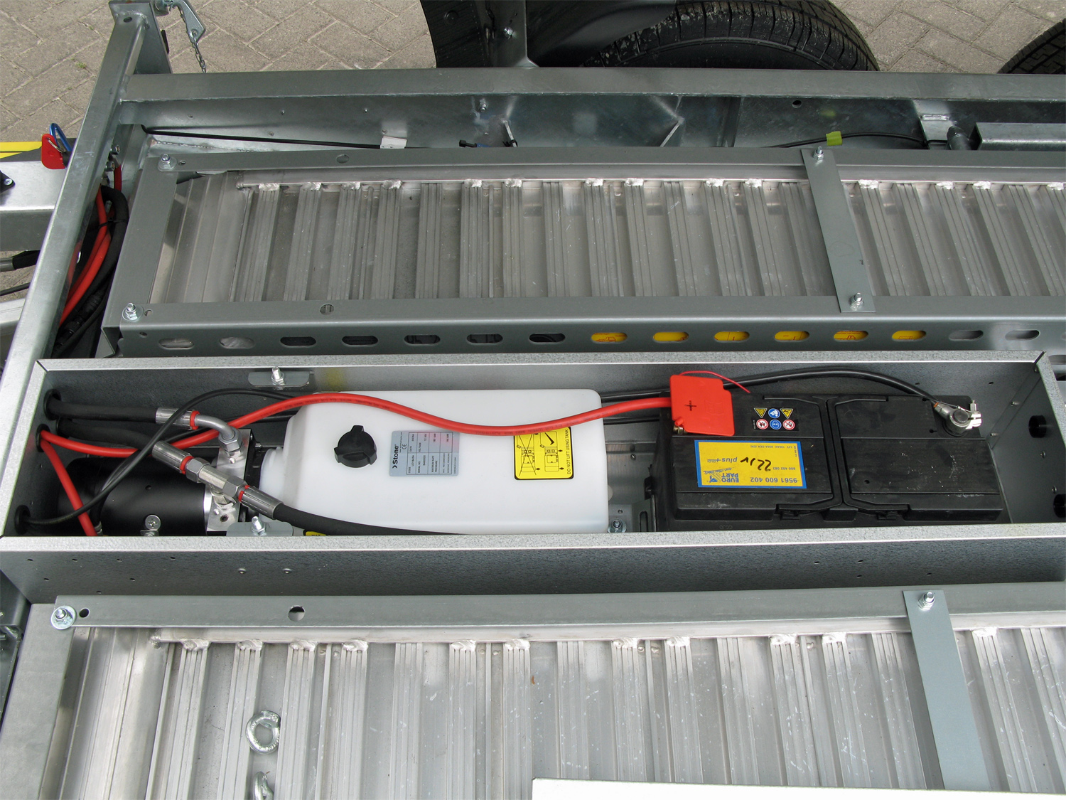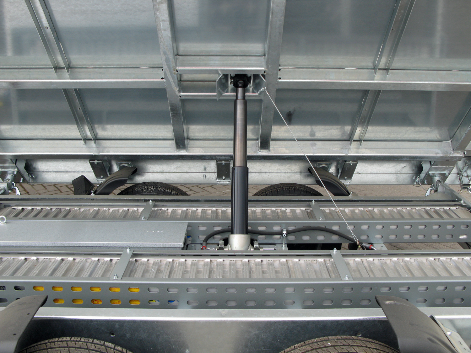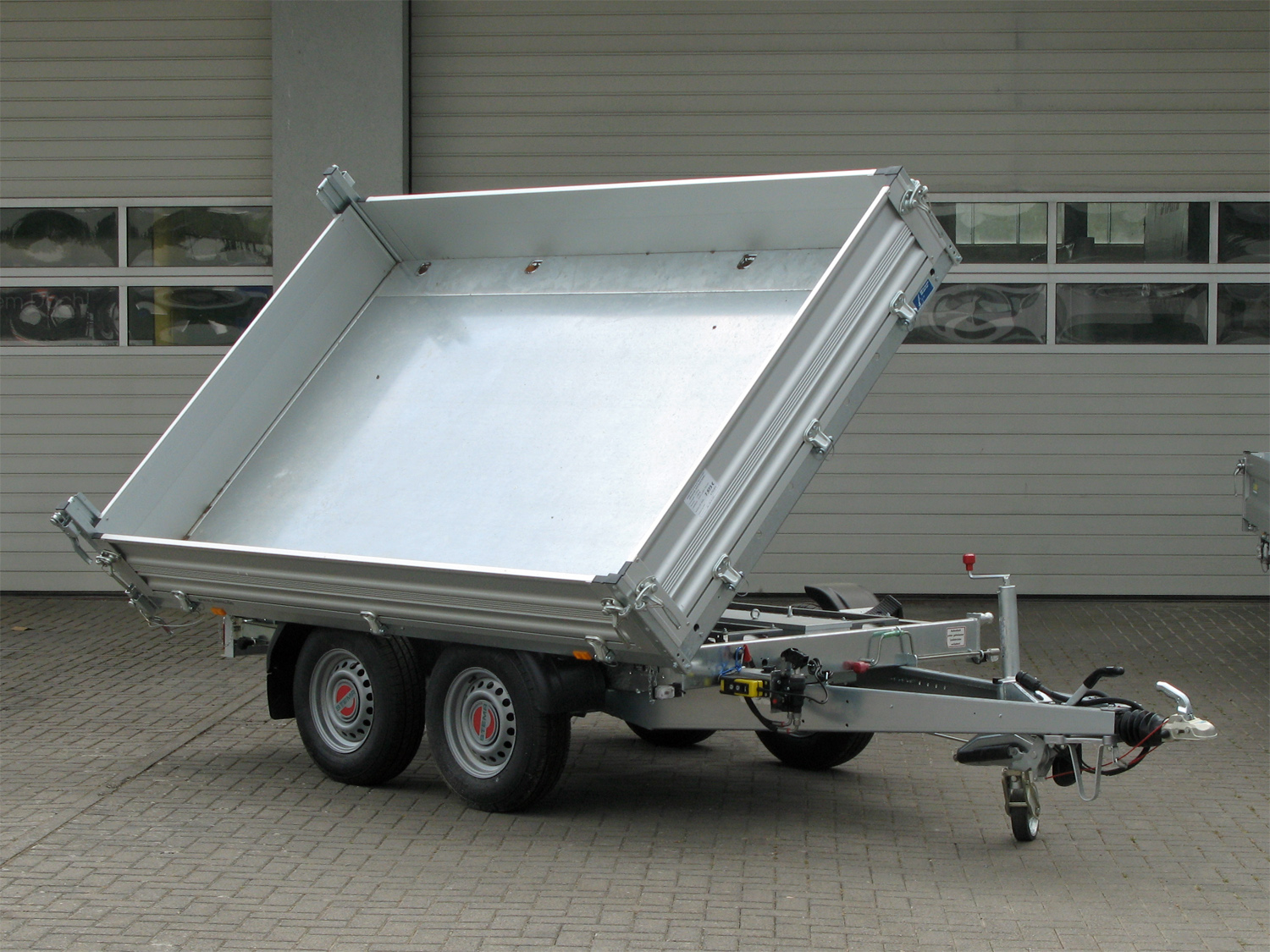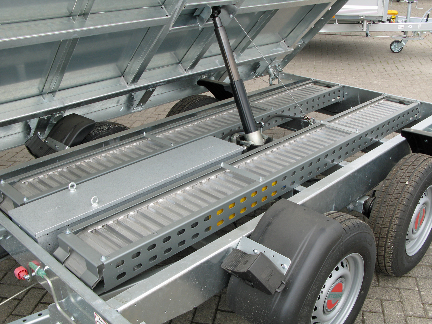 - Grundrahmen (Fahrgestell) und Kippbrücke aus massiven Stahlprofilen geschweißt und im Tauchbad feuerverzinkt