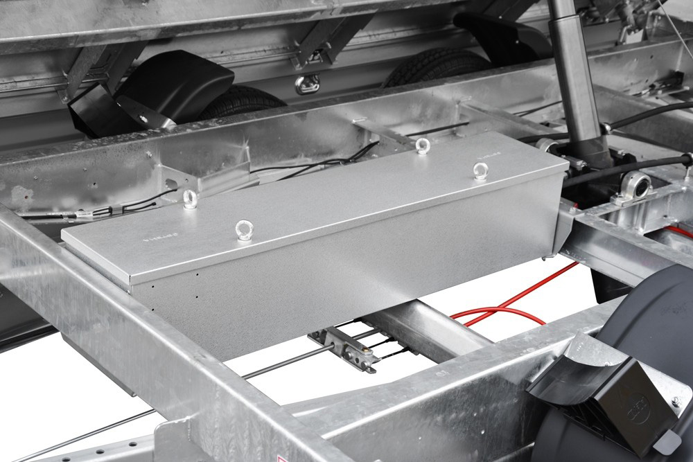 - Grundrahmen (Fahrgestell) und Kippbrücke aus massiven Stahlprofilen geschweißt und im Tauchbad feuerverzinkt
