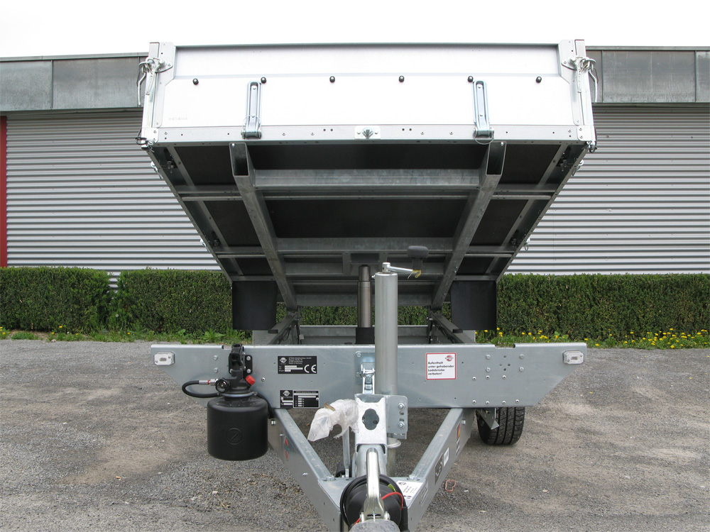 - hydraulische Handpumpe, großdimensionierter hartverchromter 3-stufiger Teleskopzylinder mit geringer Bauhöhe für maximale Bodenfreiheit