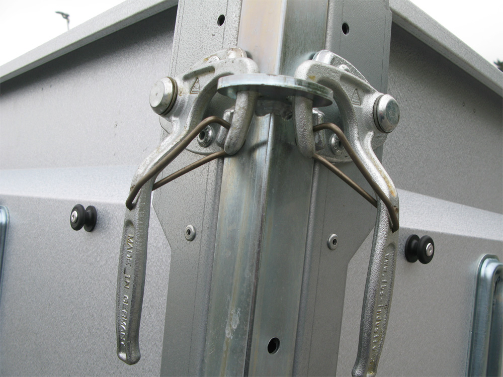 - GALVALUME (Alu-Zink-Beschichtung) Bordwände mit breiten stabilen Scharnierbändern