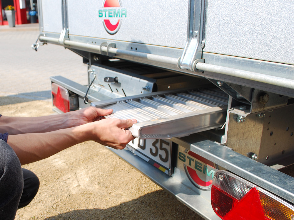 - GALVALUME (Alu-Zink-Beschichtung) Bordwände mit breiten stabilen Scharnierbändern