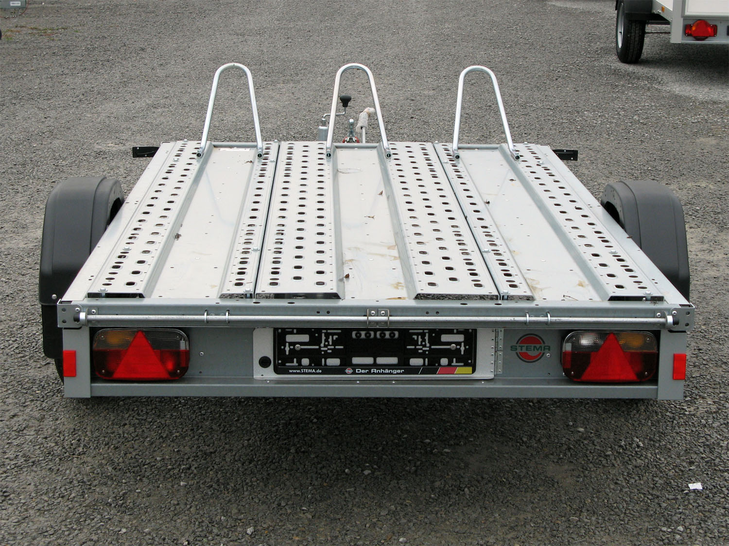- stabile Radbügel für festen Stand der Motorräder