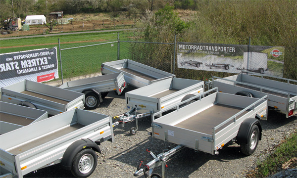 Unsere Ausstellung bietet Ihnen vor Ort eine Auswahl von über 100 Anhängern, die kurzfristig zur Abholung zur Verfügung stehen. Alle anderen Modelle werden mit Ihrer Wunschkonfiguration direkt vom Hersteller für Sie bestellt.