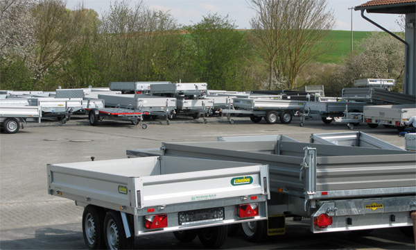 Im zentral gelegenen Reichenberg bei Würzburg sind wir autorisierter Händler der Anhängermarken Humbaur, STEMA, Unsinn, Saris, und Hapert . Unser Sortiment umfasst mehr als 1.500 verschiedene Anhängermodelle. Ob Kastenanhänger, Hochlader, Kofferanhänger oder Dreiseitenkipper wir haben für jedes Transportproblem die passende Lösung. Gerne konfigurieren wir Ihren Anhänger passgenau für Ihre Ansprüche. Alle Hersteller bieten Ihnen zu jedem einzelnen Anhänger ein umfangreiches Zubehörprogramm, wie z. B. Flachplanen, Hochplanen, Gitter- und Bordwandaufsätze, Auffahrschienen, Rampen uvm.