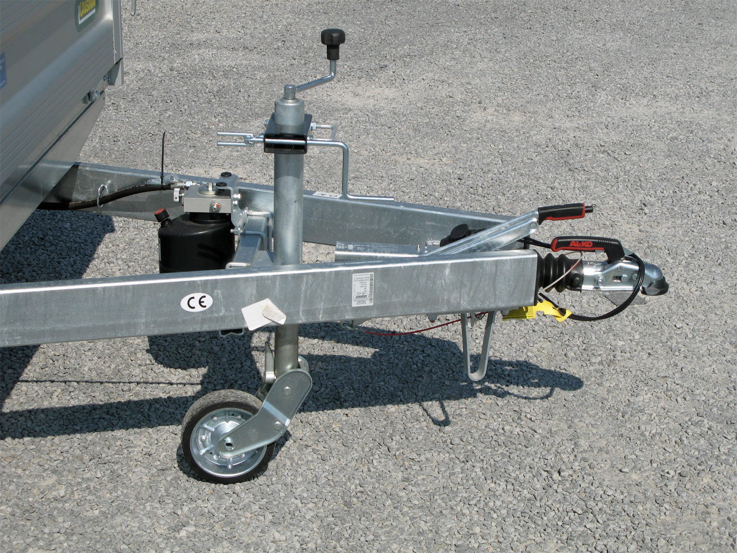 - Verstärktes, automatisches Stützrad, für sicheres Abstellen des beladenen Anhängers, Tragkraft 500kg