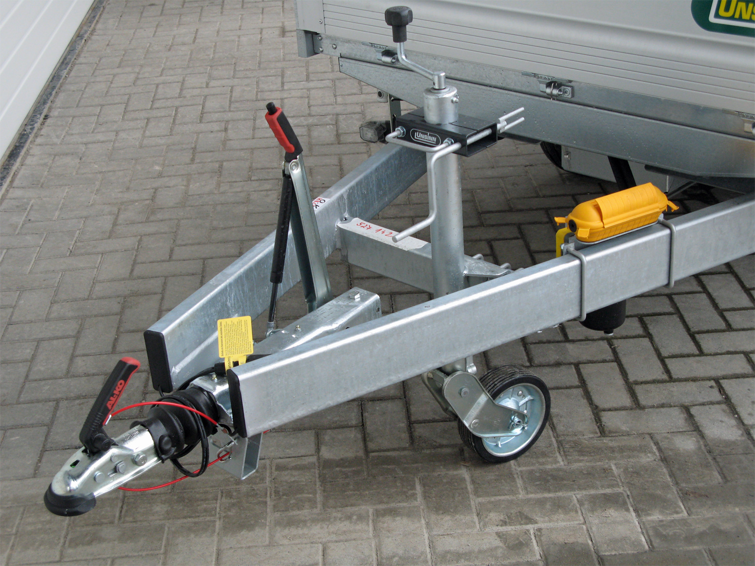 - Verstärktes, automatisches Stützrad, für sicheres Abstellen des beladenen Anhängers, Tragkraft 500kg