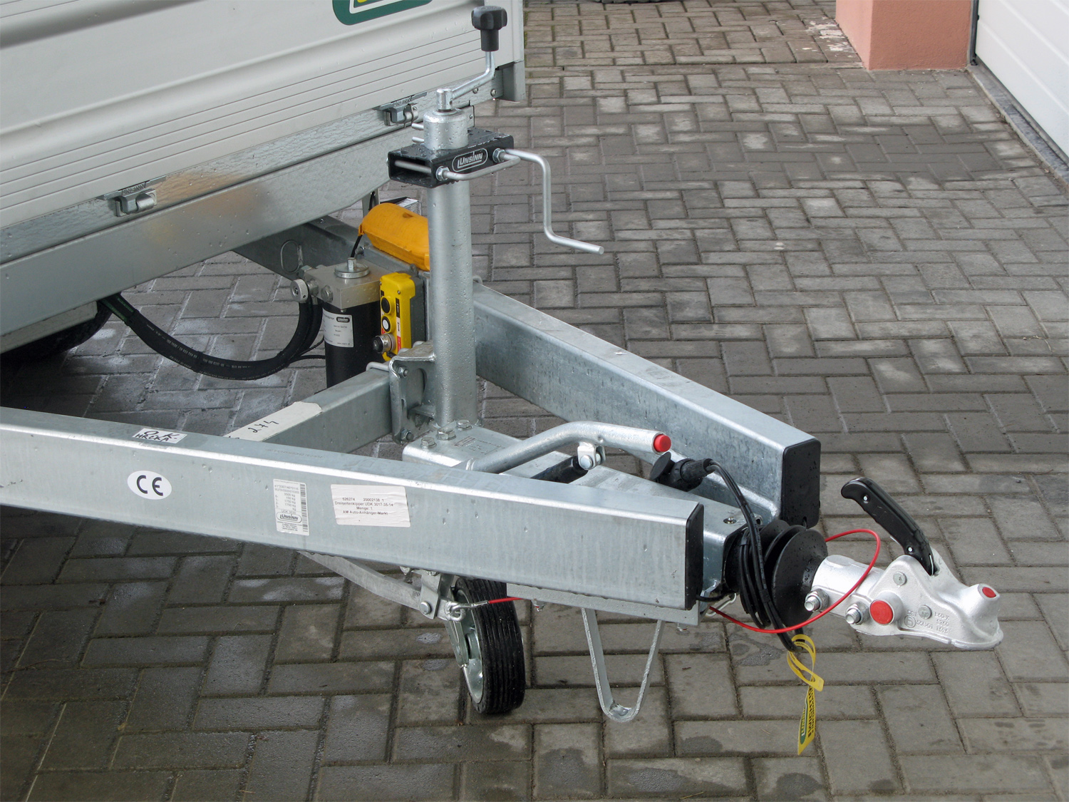 - Verstärktes, automatisches Stützrad, für sicheres Abstellen des beladenen Anhängers, Tragkraft 500kg