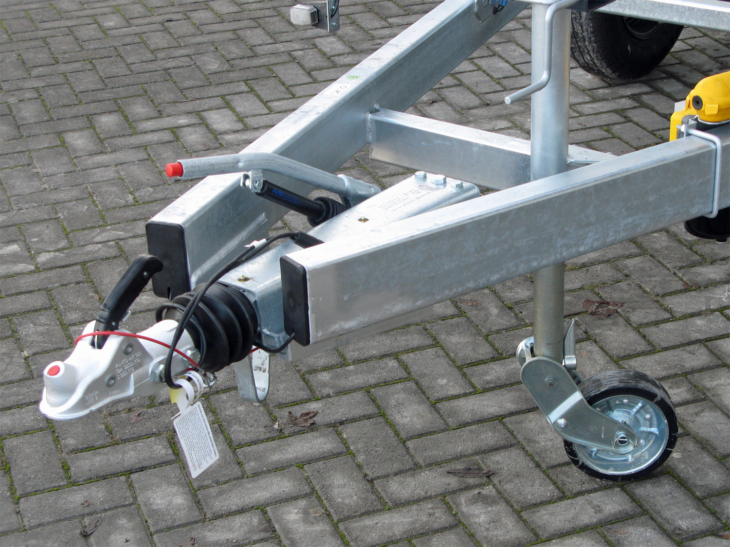 - Verstärktes, automatisches Stützrad, für sicheres Abstellen des beladenen Anhängers, Tragkraft 500kg