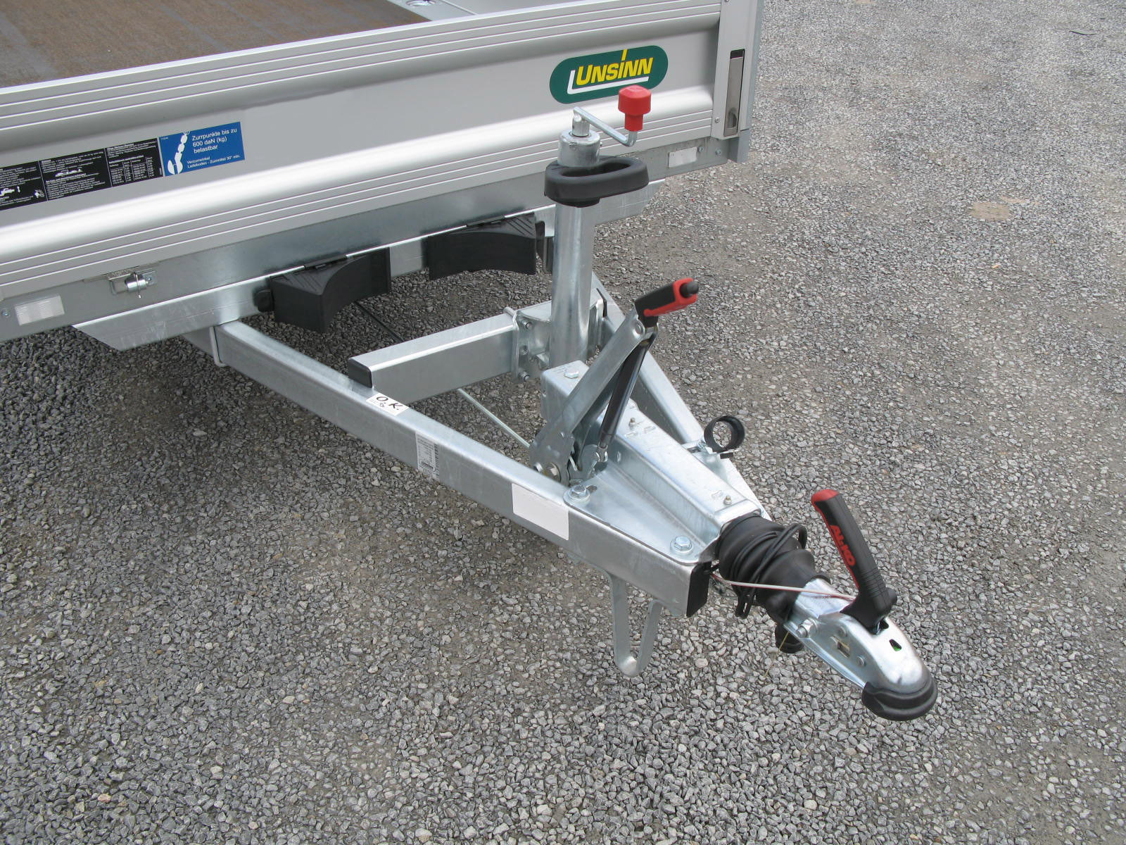 - Verstärktes, automatisches Stützrad, für sicheres Abstellen des beladenen Anhängers, Tragkraft 500kg