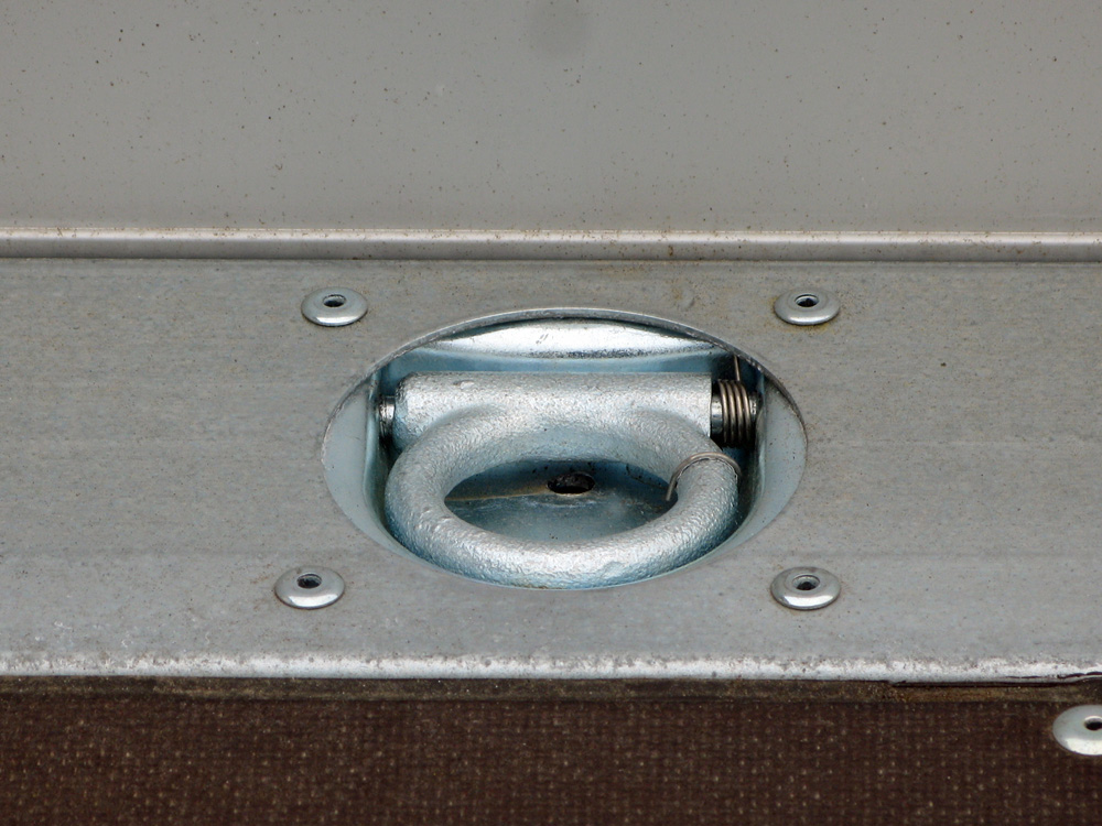 - 6 Zurrmulden klappbar, im Bodenrahmenprofil versenkt montiert