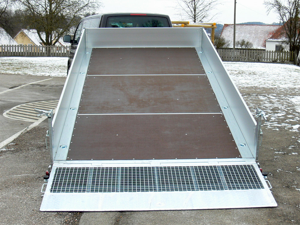 - Die Ladefläche ist durch Schwerpunktverlagerung oder hydraulisch nach hinten kippbar, dadurch ist ein schneller und sicherer Ladevorgang möglich.
