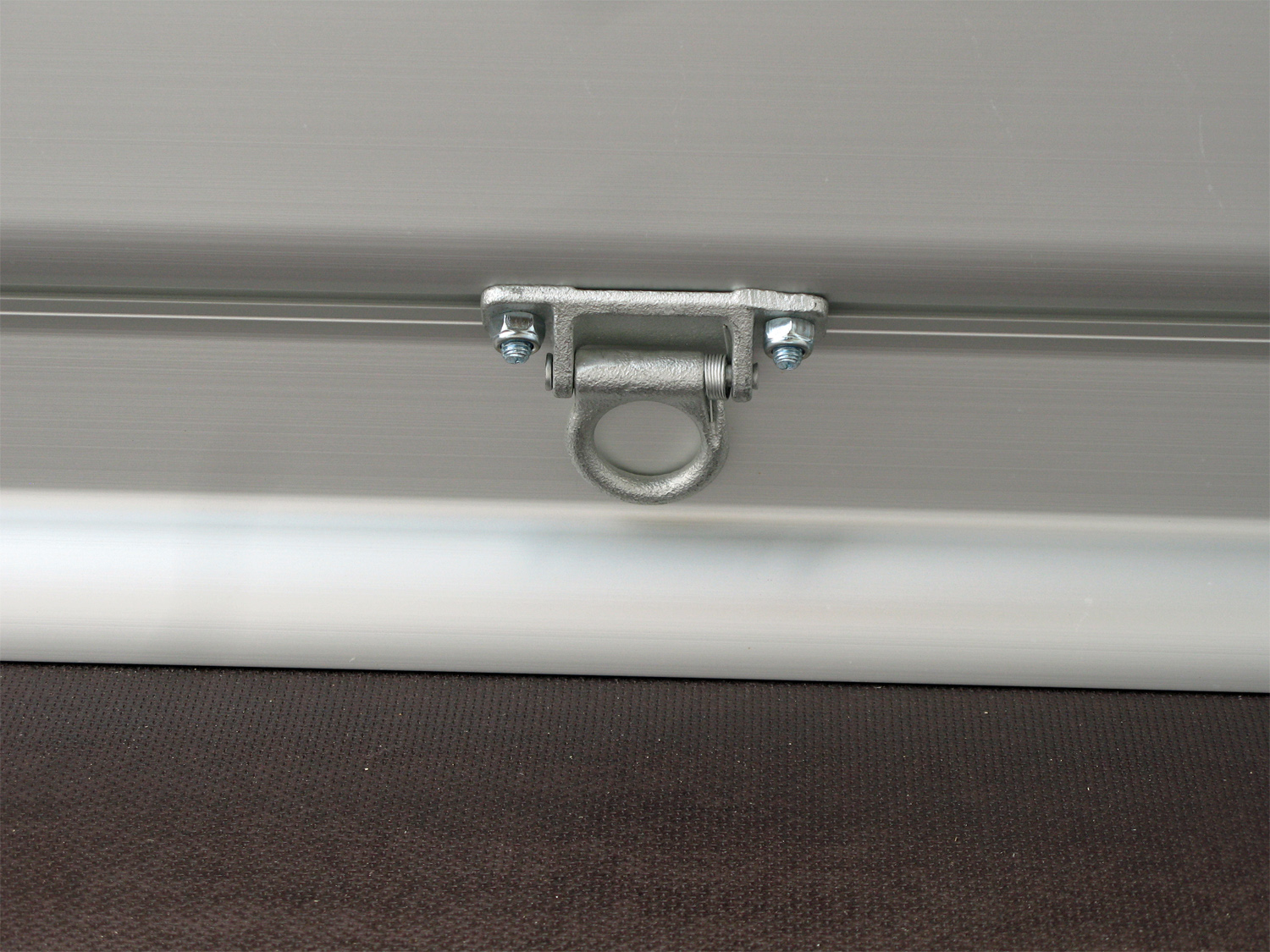 - Aluminium-Hohlprofil, eloxiert, hinten abklappbar, mit versenkten Verschlüssen