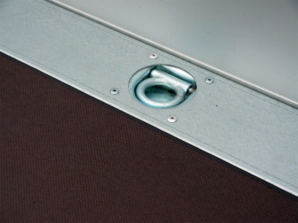 - 6 Zurrmulden klappbar, im Bodenrahmenprofil versenkt montiert
