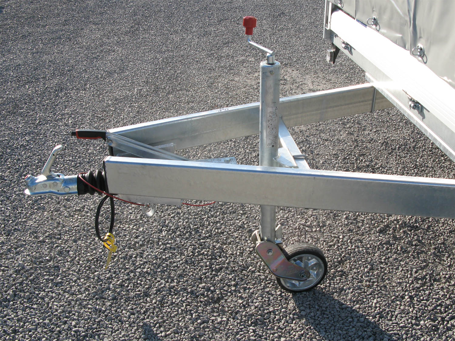 - Verstärktes, automatisches Stützrad, für sicheres Abstellen des beladenen Anhängers, Tragkraft 500kg