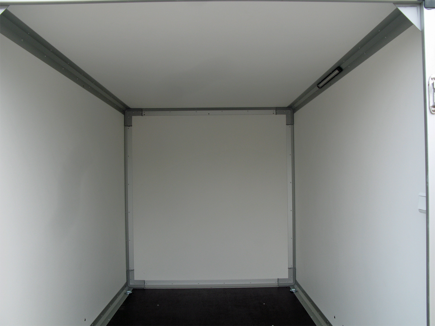 Der Anhänger ist mit zwei Hecktüren mit Stangenschloss ausgestattet, die einen einfachen und sicheren Zugang zum großzügigen Laderaum ermöglichen. Die Innenbeleuchtung (12 Volt LED) und sechs Zurrösen im Innenraum erleichtern das Beladen und Sichern des Ladeguts auch bei schlechten Lichtverhältnissen. Für mehr Flexibilität kann der Anhänger optional mit einer Heckrampe ausgestattet werden, wodurch das Verladen von schweren oder rollenden Gegenständen erleichtert wird. Zusätzlich können Zurrschienen gewählt werden, um bessere Möglichkeiten zur Ladungssicherung während des Transports zu bieten.